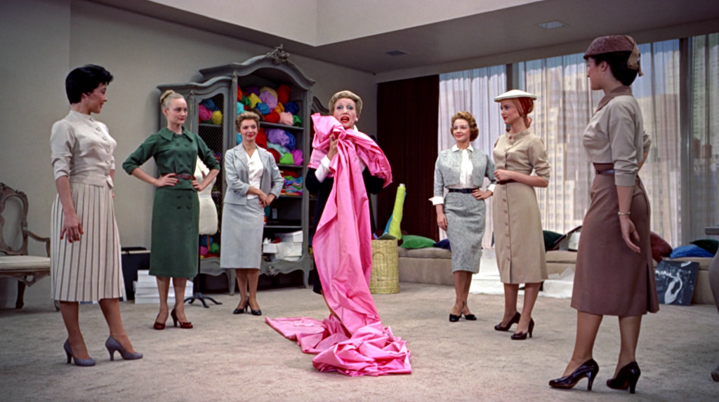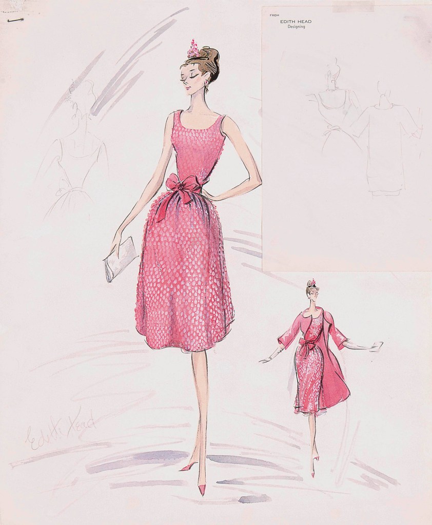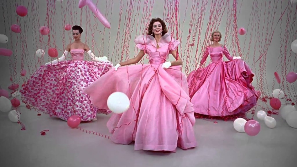 Le rose shocking c’est ensuite fait une place dans la filmographie des années 1950-1960. Tout d’abord, en 1953, le costumier William Travilla réalisait pour Marilyn Monroe, l’une des robes les plus connues de sa carrière. Cette robe sera d’ailleurs imitée par Madonna dans le clip de sa musique « Material Girl ».