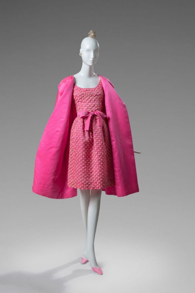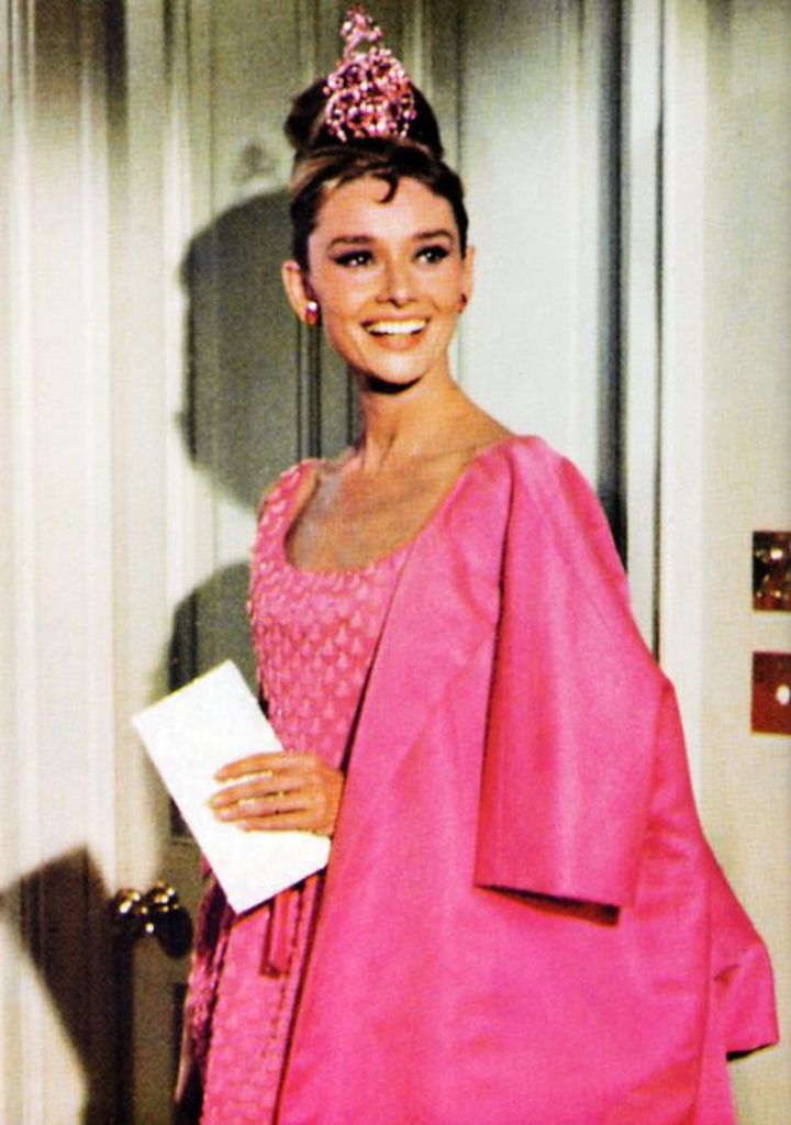 En 1961, c’est au tour d’Audrey Hepburn d’oser le rose shocking en incarnant Holly Golightly dans Breakfast at Tiffany’s. En effet, bien qu’on retienne la fameuse petite robe noir réalisée par Hubert de Givenchy, une autre robe, cette fois-ci cocktail, elle aussi signée Givenchy, donne une touche de couleur à la sombre garde-robe du personnage.